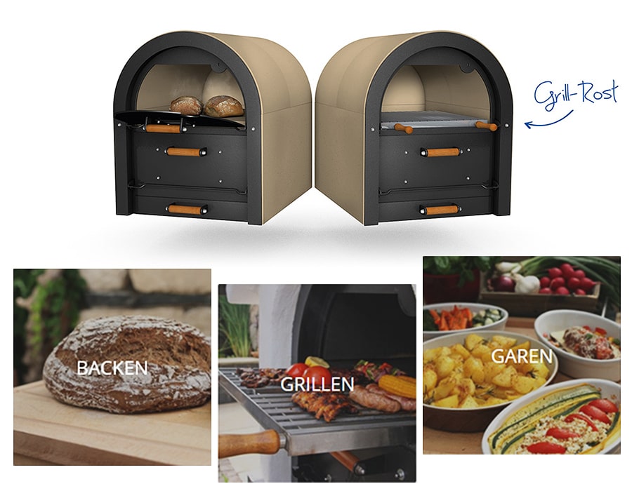 In einer Zeit, in der Grundstücke kleiner und teurer werden, einen Holzbackofen bieten, der auf kleiner Fläche viele Funktionen bündelt und eine große Backfläche bietet.
